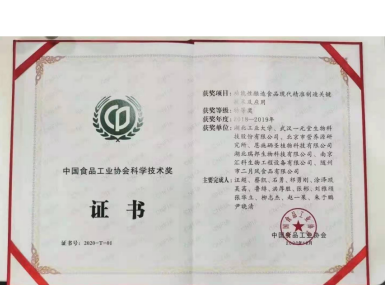 中國食品工業(yè)協(xié)會科學技術(shù)特等獎2020